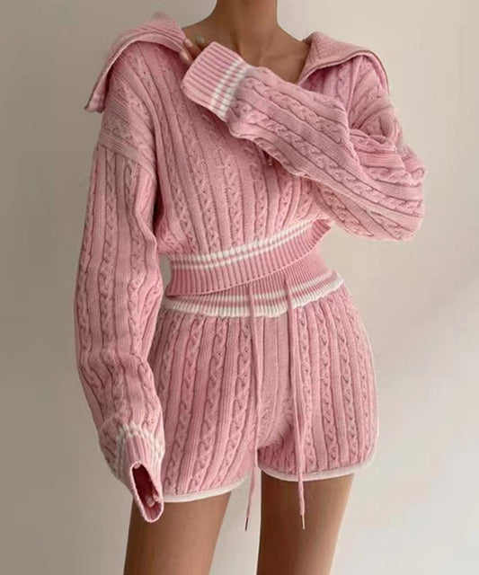【Jasmine】ケーブル編みプルオーバー+ショートパンツ
