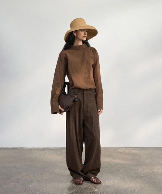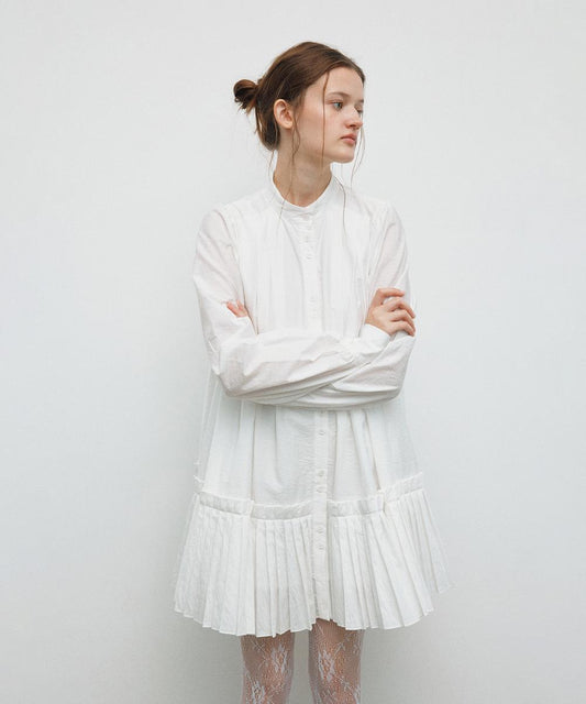 DECADE CLASSIC スタンドカラー プリーツ シャツワンピース