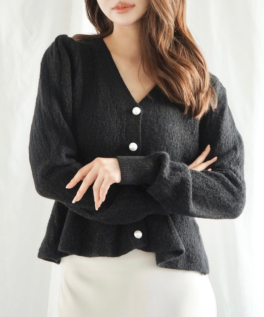 【Jasmine】もふもふ リボンボタン付きカーディガン
