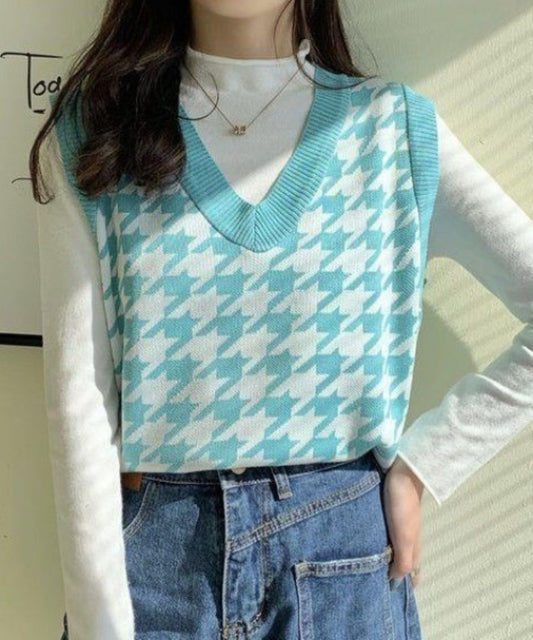 【HOOK】for girls ショート丈 ダメージ配色切り替え編み上げポロニット
