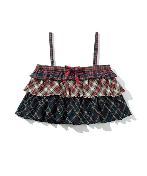 HOOK for girls -original- チェック柄切り替え被せ段々キャミソール セットアップ可能