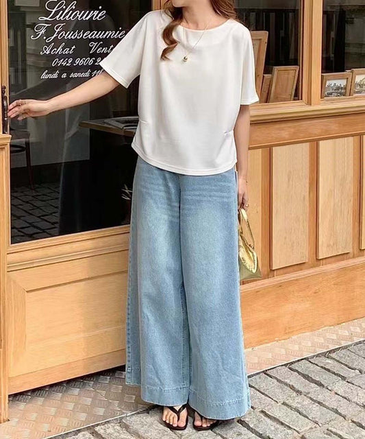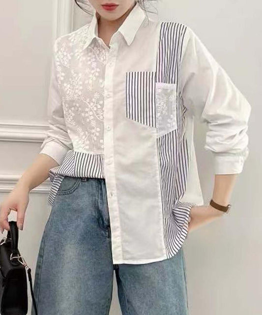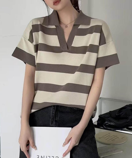 【aimoha】ワイドボーダー襟付きVネックトップス