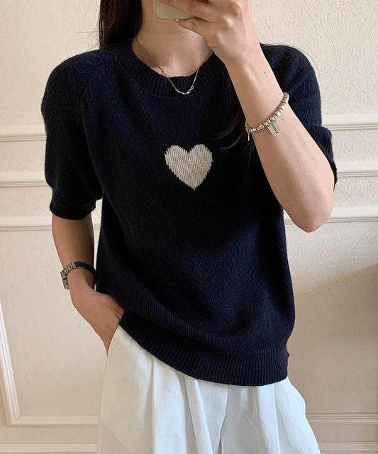 【aimoha】リボンモチーフ ロールネック半袖ニットトップス