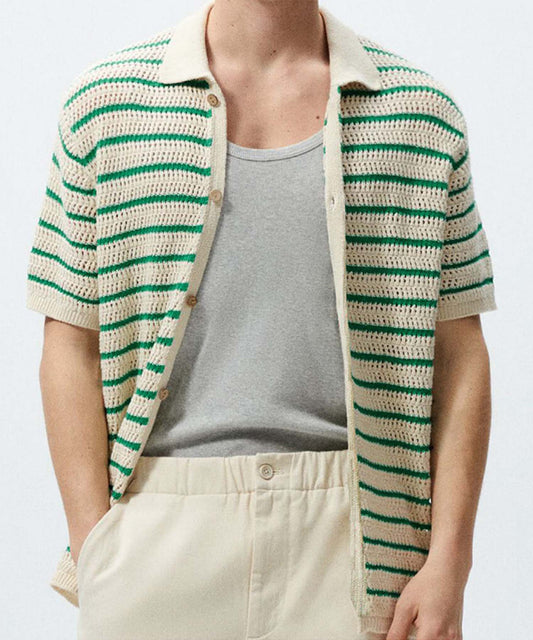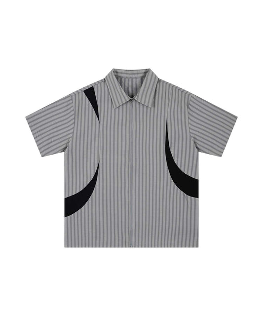 HOOK -original- 古着風ストライプ総柄半袖ビッグシャツ