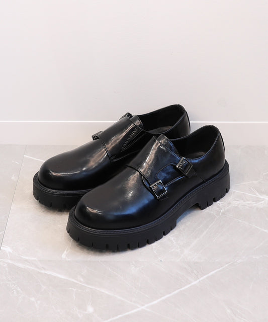 【shoes365】二層カバー バックル二個付け 厚底ドレスシューズ