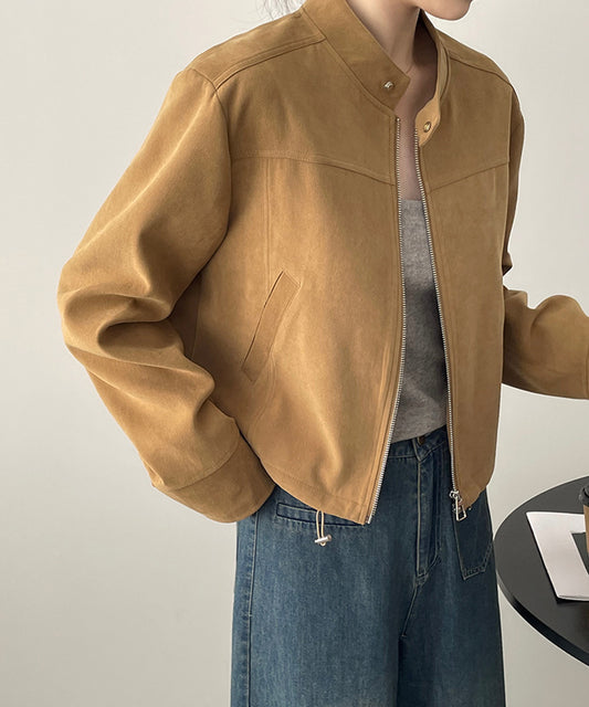 【Jasmine】ゆったりVネックノーカラーダブルボタンフェイクファージャケット