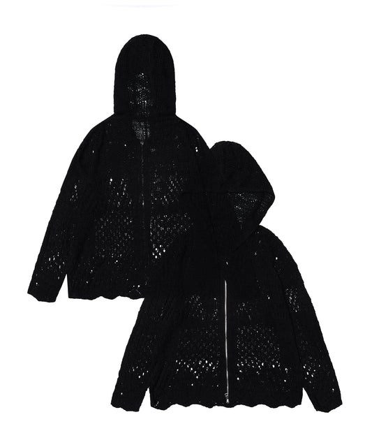 【HOOK】for girls 無地透かし編みニットジップパーカー