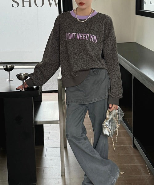 【HOOK】for girls フロント刺繍レオパード総柄リンガースウェット