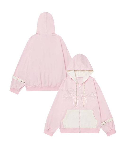 【HOOK】for girls バイカラー刺繍ジップパーカー