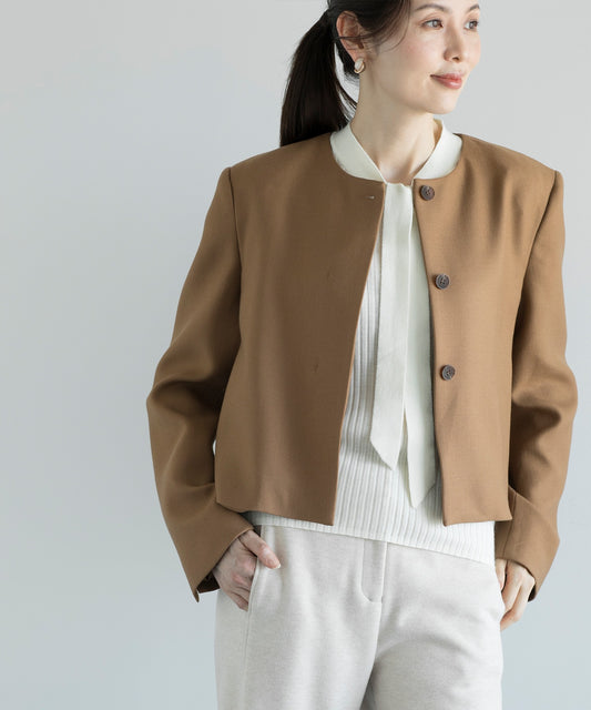 【DECADE CLASSIC】ウール ショート丈ノーカラージャケット