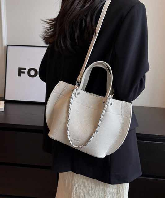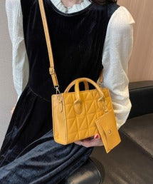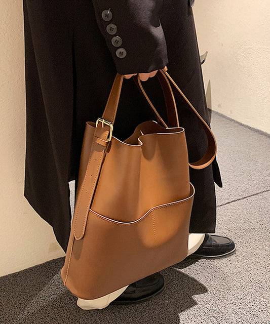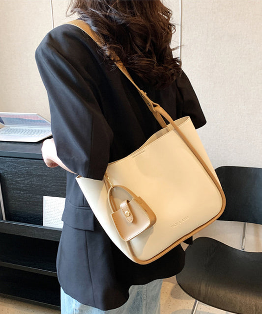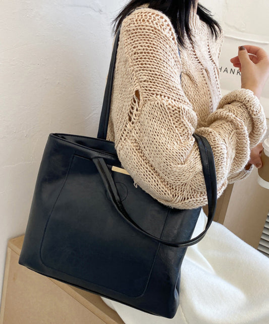 外ポケット付きフェイクレザートートバッグ(ポーチ付き)