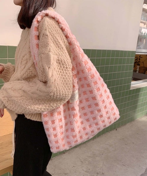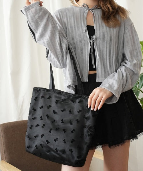 【HOOK】for girls リボン総柄フロッキー生地トートバッグ