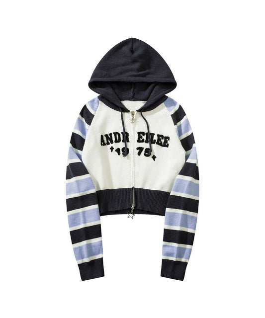 【HOOK】for girls レーシング風袖星切り替えブルゾンニット ショート丈