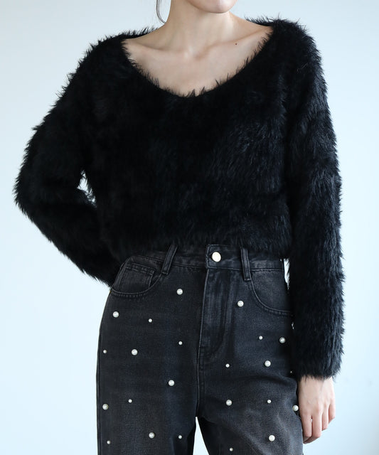 【Jasmine】ハートネック ミニ丈 ニットトップス