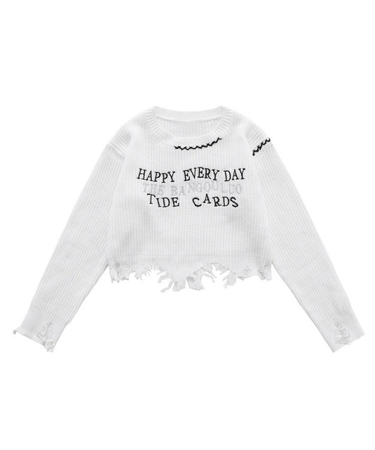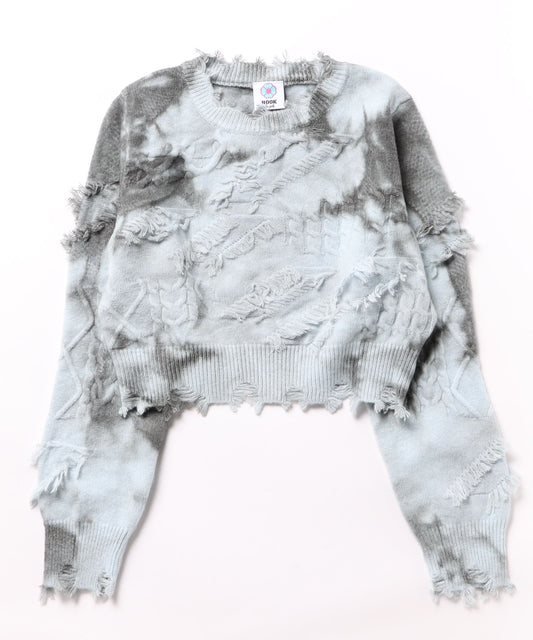 【HOOK】for girls クレイジーステッチダメージニット ショート丈