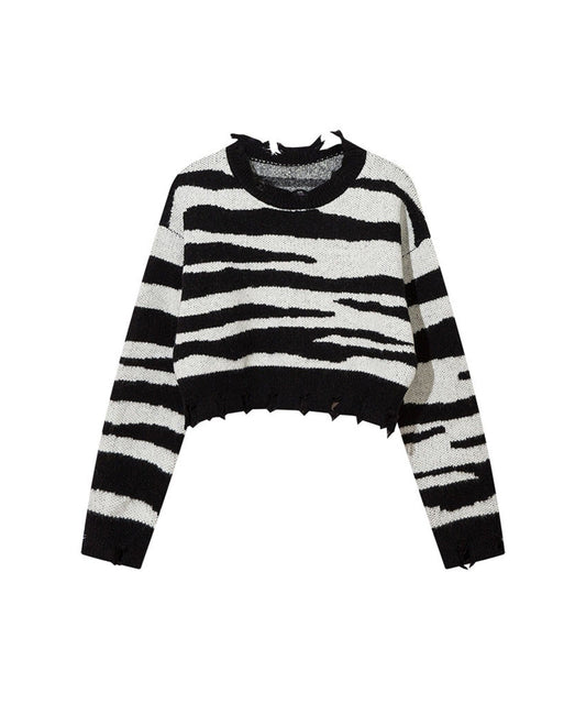 【HOOK】for girls ゼブラ模様ニット ショート丈