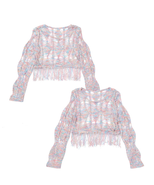 【HOOK】for girls 切りっぱなしフリンジデザイン タイダイ染めショート丈ニット