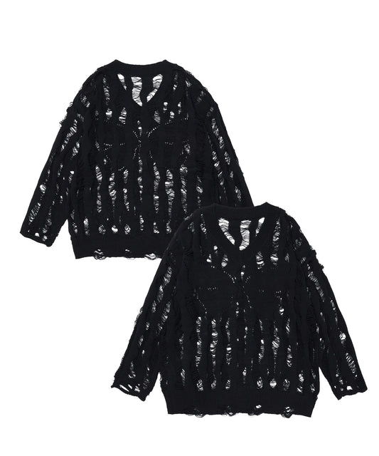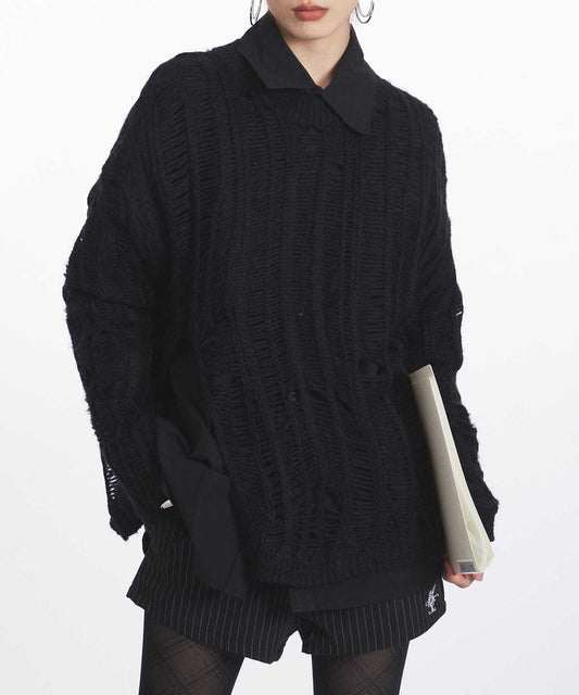 【HOOK】for girls ダメージ透かし編みオーバーニット
