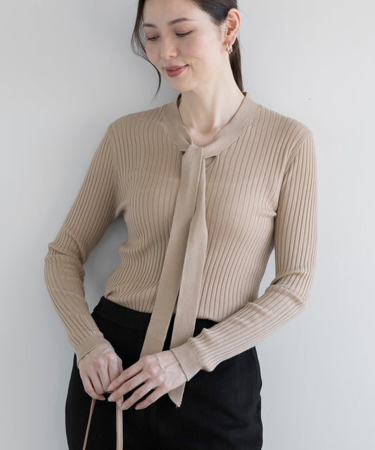 【DECADE CLASSIC】ピュアウール ボウタイ リブニット