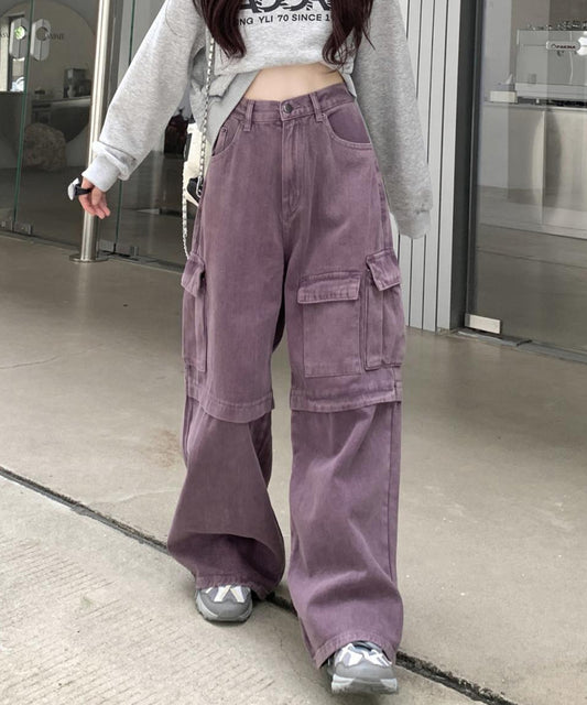 【HOOK】for girls アシンメトリービッグポケットカラーデニムカーゴパンツ