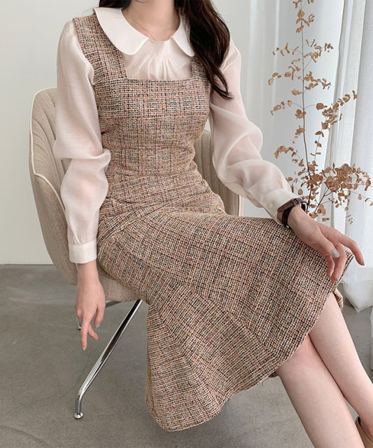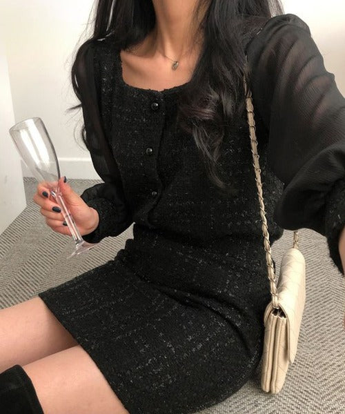 【 Jasmine】スクエアネックツイードマーメイドワンピース