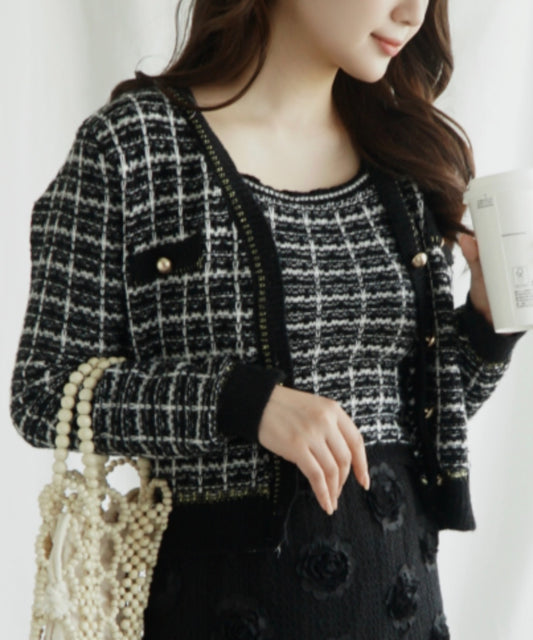 【Jasmine】ツイード風アンサンブル ニットキャミソール+カーディガン