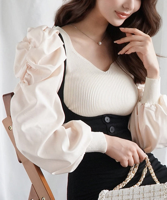 【Jasmine】チュールドッキングVネックニットトップス