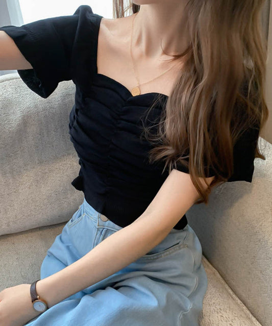 【Jasmine】スクエアネック半袖ニットギャザートップス