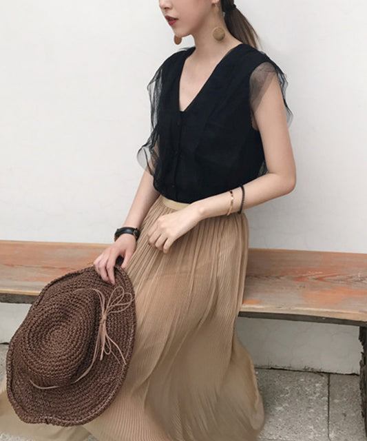 韓国風脇紐透け感UVカットブラウス