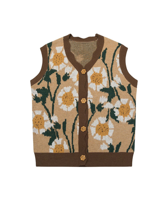 HOOK -original-花とアーガイル模様クレイジーステッチニットベスト
