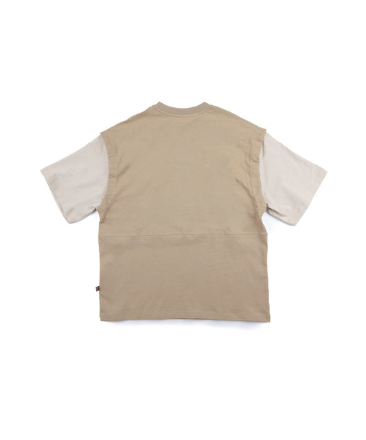 2WAY REMOVABLE SLEEVE COTTON CREW NECK BIG S/S T-SHIRT