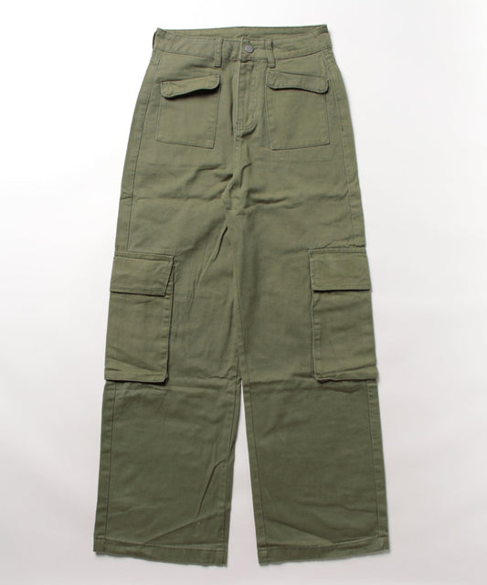 【HOOK】for girls アシンメトリービッグポケットカラーデニムカーゴパンツ
