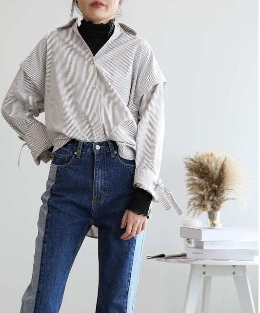 【aimohaオリジナル】シンプルボリュームスリーブショートシャツ