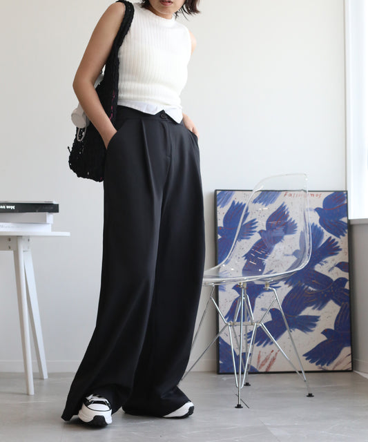 【aimohaオリジナル】ハイウエストタック入りストレッチパンツ