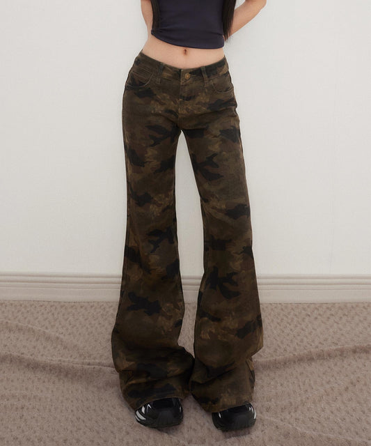 【HOOK】for girls ヴィンテージ×Y2K ローライズカモ柄フレアデニムパンツ