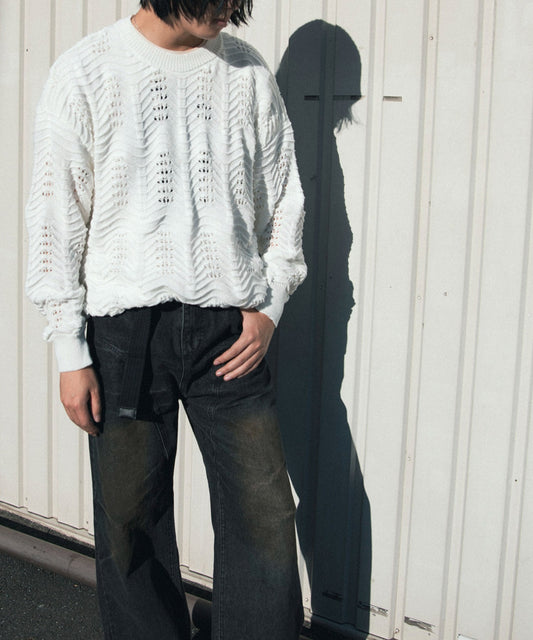 【aimoha Men's】CREW NECK POINTELLE KNIT ポワントール編みニット