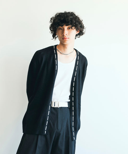 【aimoha Men's 】紐ステッチオーバーサイズカーディガン