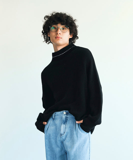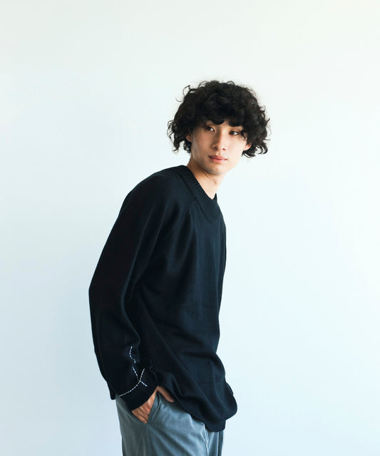 【aimoha Men's 】刺繍ステッチワイドバルーンスリーブ セーター