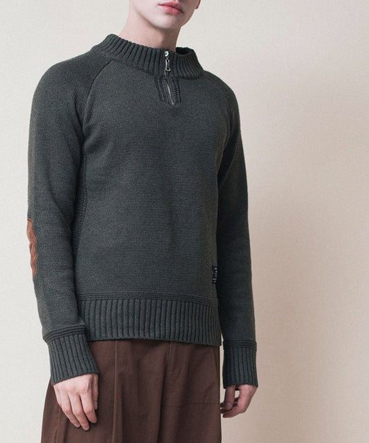 【aimoha Men's】エルボーパッチ ハーフジッパーセーター