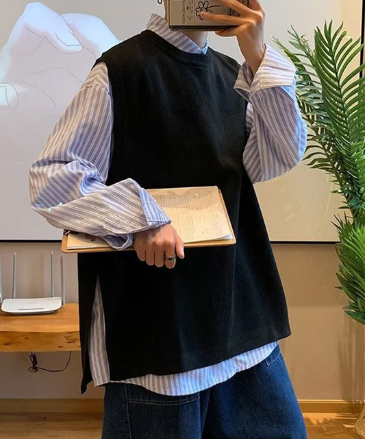 【aimoha Men's】 レイヤードスタイル ニットセーター