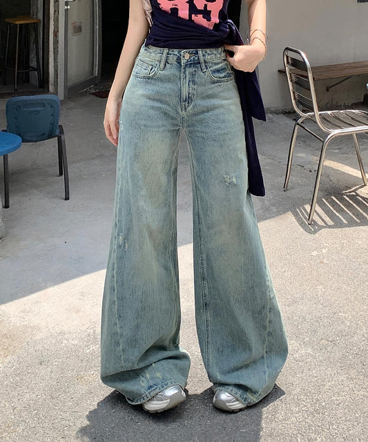 【HOOK】for girls Y2Kダメージルーズワイドデニムパンツ / ヴィンテージウォッシュバギー