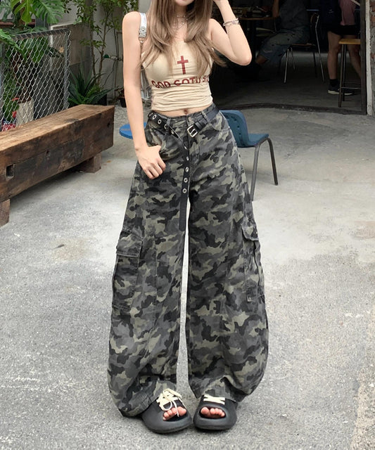 【HOOK】for girls カモフラ柄バルーンカーゴパンツ / ビッグポケット ワイドミリタリーパンツ