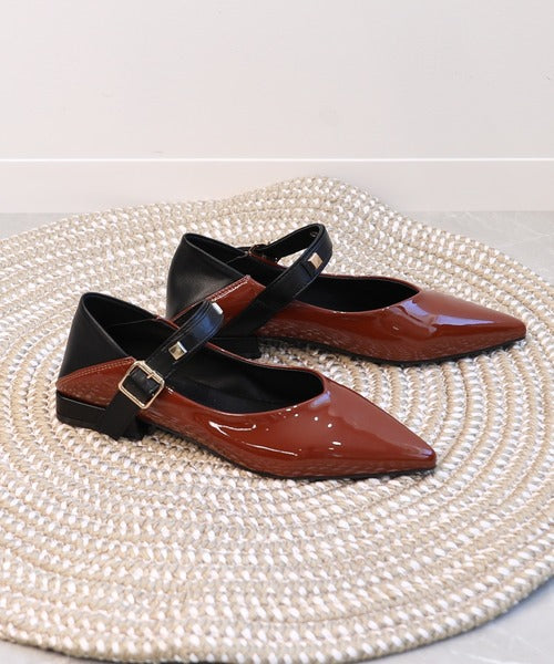 【shoes365】ポインテッド トゥ ローヒール メリージェーン シューズ