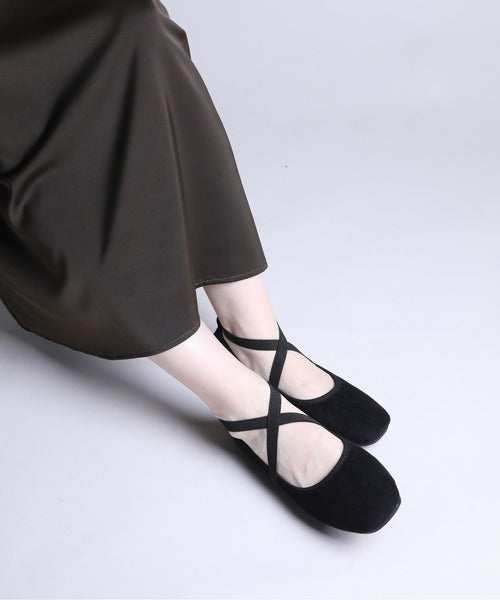 【shoes365】スエード素材のクロスストラップバレエシューズ