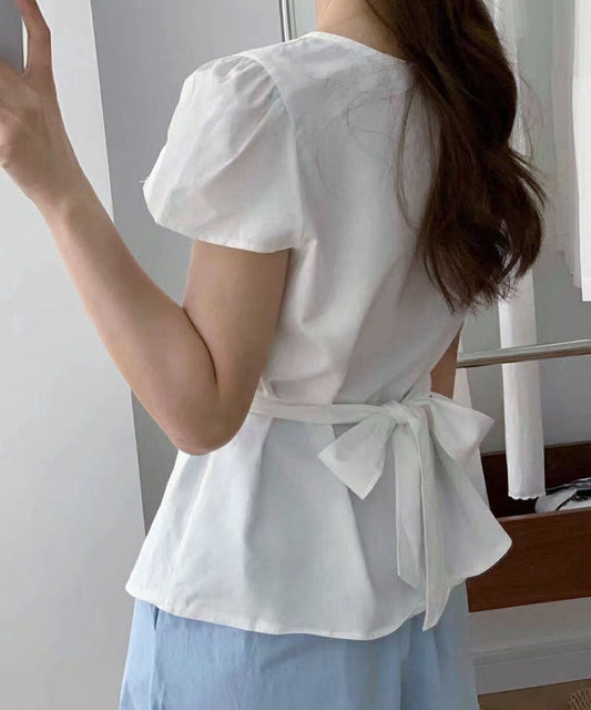 SALEかぎ編み風ネックライン半袖ニットトップス