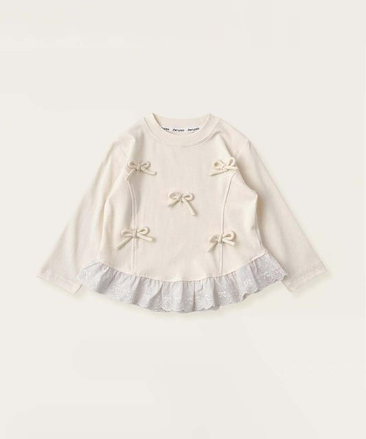 【aimoha-KIDS-】リボン付き裾フリルトップス