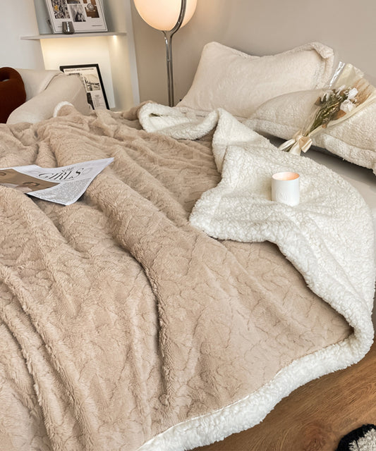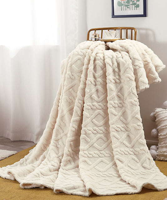 【100x150cm】ケーブル編み風大判サイズモコモコブランケット毛布