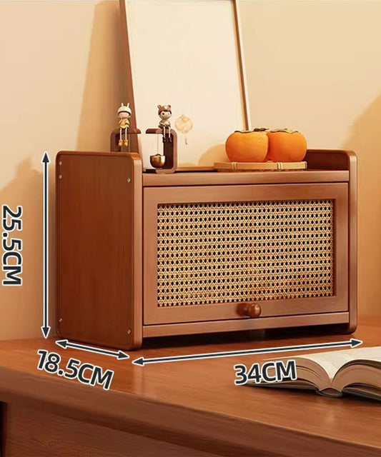 ラタン調フラップ扉付き収納ラック