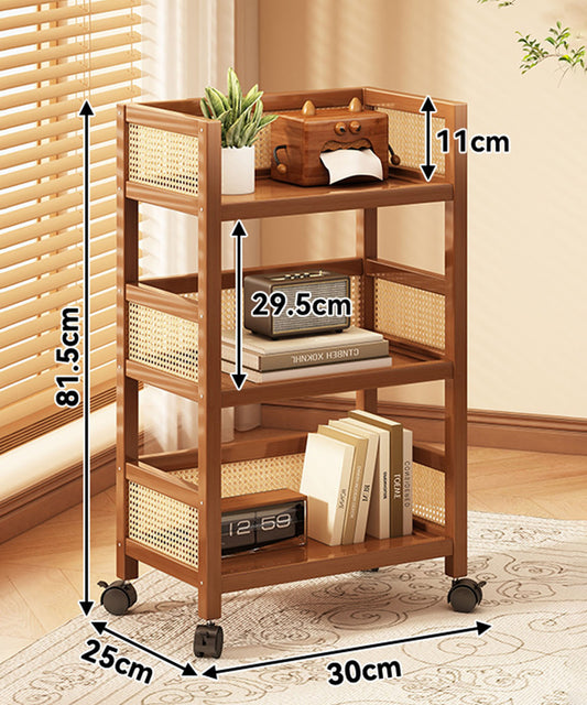 ラタン調スリム3段収納ワゴンキャスターラック
