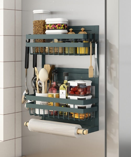 冷蔵庫の壁面をフル活用 マグネット式 キッチン収納ラック L